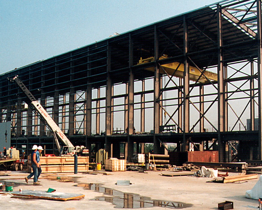 A standing seam metal roof, insulated and metal wall panels enclosed the structure. Due to the fast-track nature of the project, the process and equipment design were performed concurrently with the building’s structural design. This tight schedule necessitated design changes on an almost daily basis and generated changes that had to be incorporated once steel was delivered to the site.
