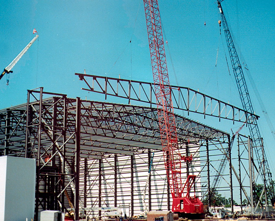 The narrow body hangar utilizes a similar design and is large enough to house a Boeing B737 aircraft. To meet Factory Mutual insurance requirements, a 22-gauge standing seam metal roof system was used and increased the number of roof purlins in high uplift areas. Other products supplied include the metal wall panels and standard Z-shaped, coldform members for the purlins and girts.