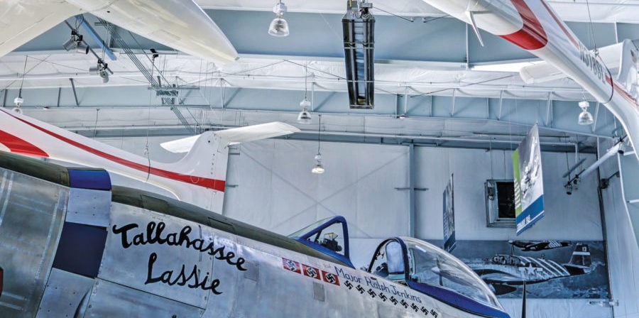 There was another functional design requirement: two 80-foot hangar doors. Because the planes are fully restored and taken out regularly to fly, the aircraft frequently are on the move. It’s not the standard museum environment where planes stay put.