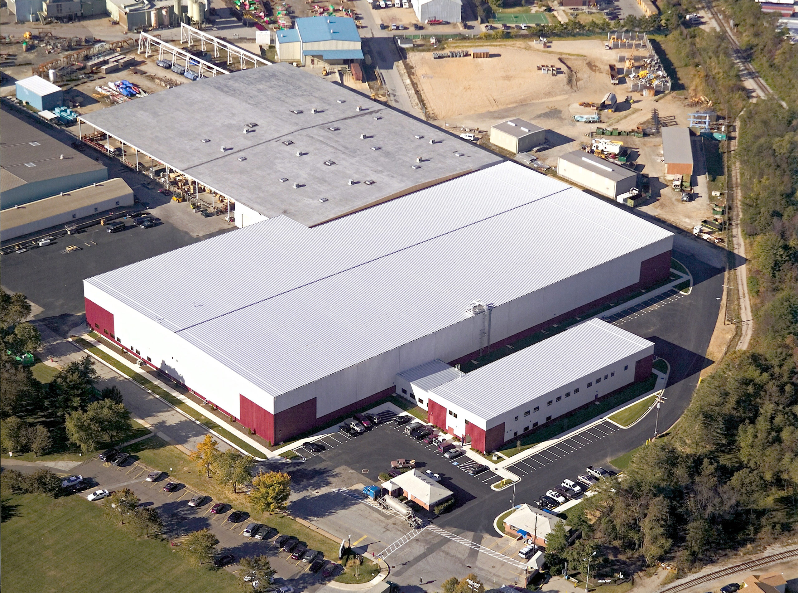 The project began with the rerouting of existing base traffic to allow construction on the new two-story administration/lab building. This building, once complete, allowed the relocation of the administrative functions and the testing laboratory to free up areas in the existing warehouse. During this relocation, phased demolition began on the warehouse, including removal of lead and asbestos materials. All the while, the facility was supplying and supporting the North Atlantic Coast Guard fleet and the Yard Post Office and Base Entry Guardhouse located yards away from the new facility continued to operate normally. Construction on the warehouse began while demolition of the old building was underway. Once the west end of the warehouse was completed, stored materials were moved into it, and the process began anew with the demolition and construction of the east end of the warehouse. The automated wire-guided warehouse retrieval system required Superflat concrete floors. Exteriors of the facility featured metal wall panels and a standing seam metal roof manufactured by BlueScope Buildings North America.
